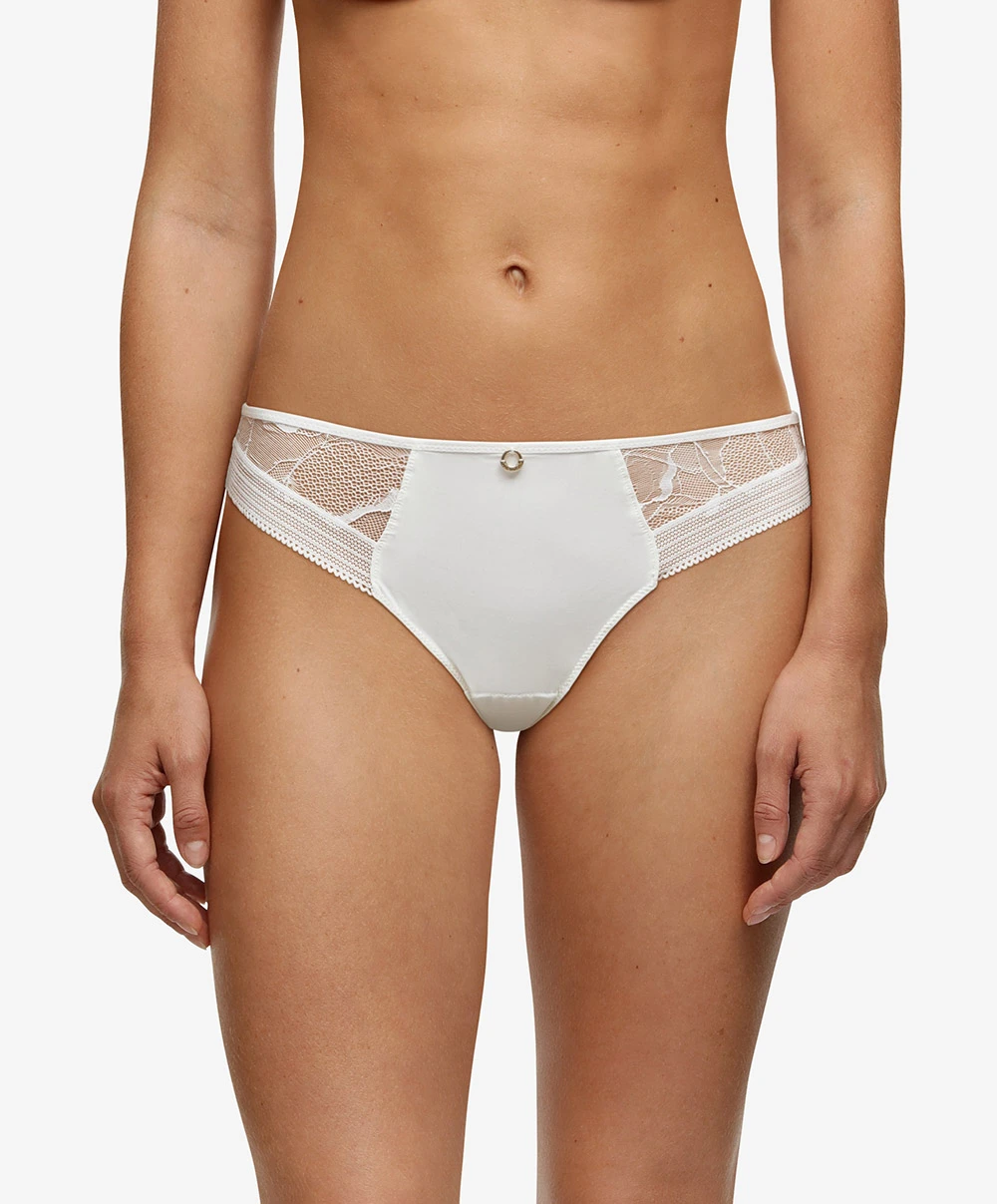 Tanga de la marque de lingerie Chantelle, collection True Lace, coloris milk (=nacre).