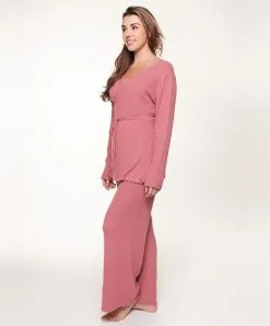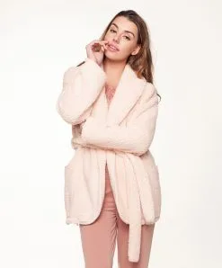 Veste polaire rose vintage « Fluffy » soft linen de la collection Lingadore Lounge.